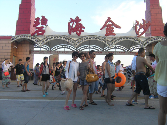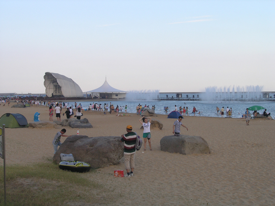 包括我在內(nèi)的幾十個同事在謝總與張總的帶領(lǐng)下于21日下午抵達(dá)了我們的目的地——碧海金沙。碧海金沙是奉賢新興的水上娛樂天堂。兒童游樂園、水上步行球、水上攀巖、氮?dú)馍諝馇颉?D電影、冰燈、冰雕藝術(shù)展等一系列精彩紛呈的水上娛樂項目吸引著大批的游人前往,真可謂是人山人海。我們迅速換好了裝備投入了我們美麗的大海的懷抱。海水、沙灘、音樂噴泉……嬉鬧的我們忘卻了炎熱與生活在大城市里的壓力。那一瞬間我們仿佛找回了幼年的快樂與激情。